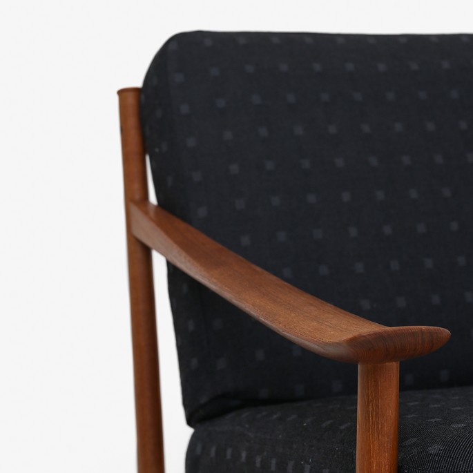 FD 130 - Lænestol i teak og mørkeblåt uld.