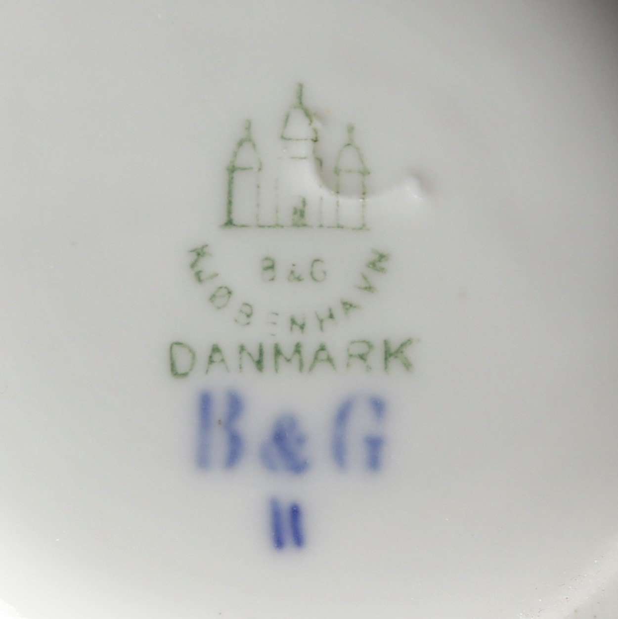 Mærket B&G med blå stempel