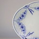Fad i hvidt porcelæn med skelform og motiv af guirlander med blå blomster