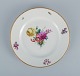 Fire middagstallerkner dekoreret med blomster og guldkant.
