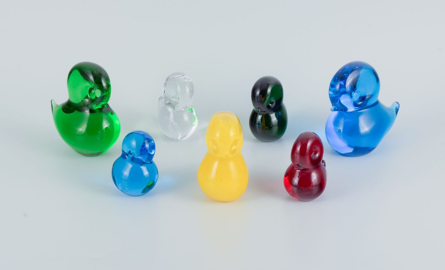 Ronneby, Sverige, FM kunstglas. Syv ællinger i svensk mundblæst kunstglas.
