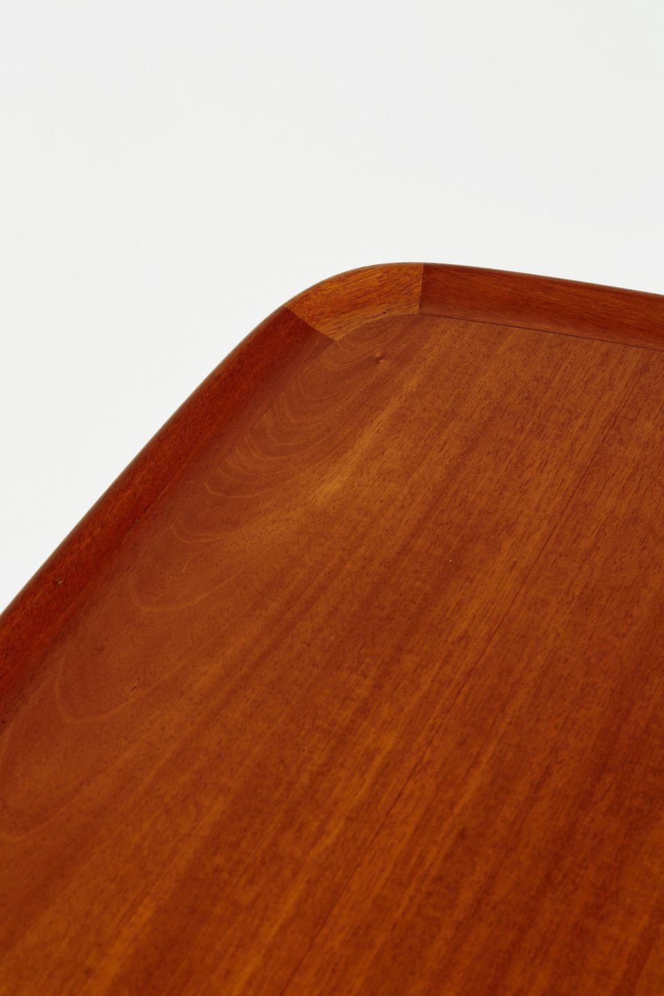 Sofabord af Cubamahogni med Kehlet kant. Sko af patineret messing. Underliggende tidskriftshylde at 3 massive tværpinde hvoraf de to yderste er let buet. Arkitektegnet /snedker arbejde udført sidst i 30'erne eller først i 40'erne.