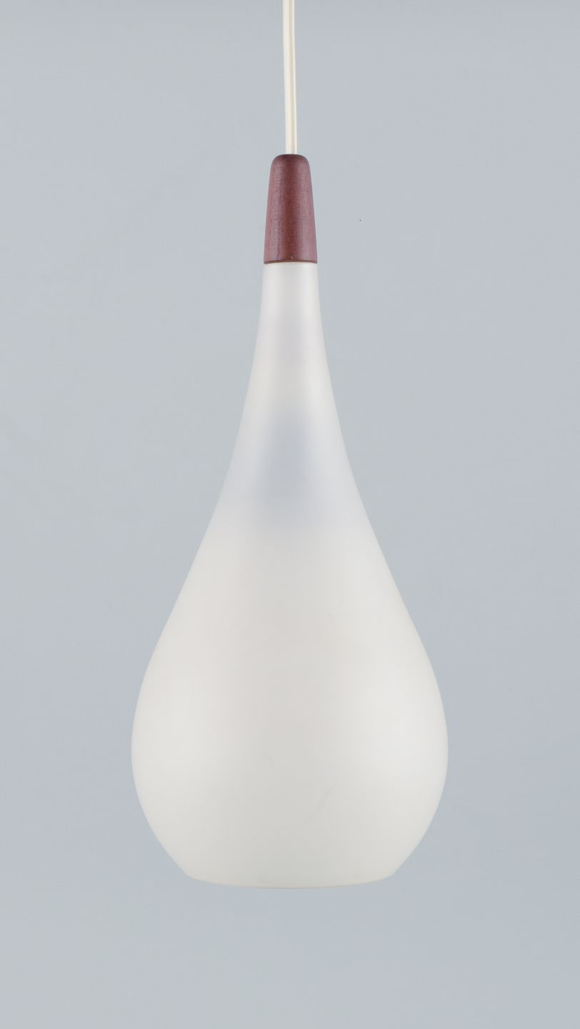 Et par ”Louis Poulsen” pendler i opalglas og teak.