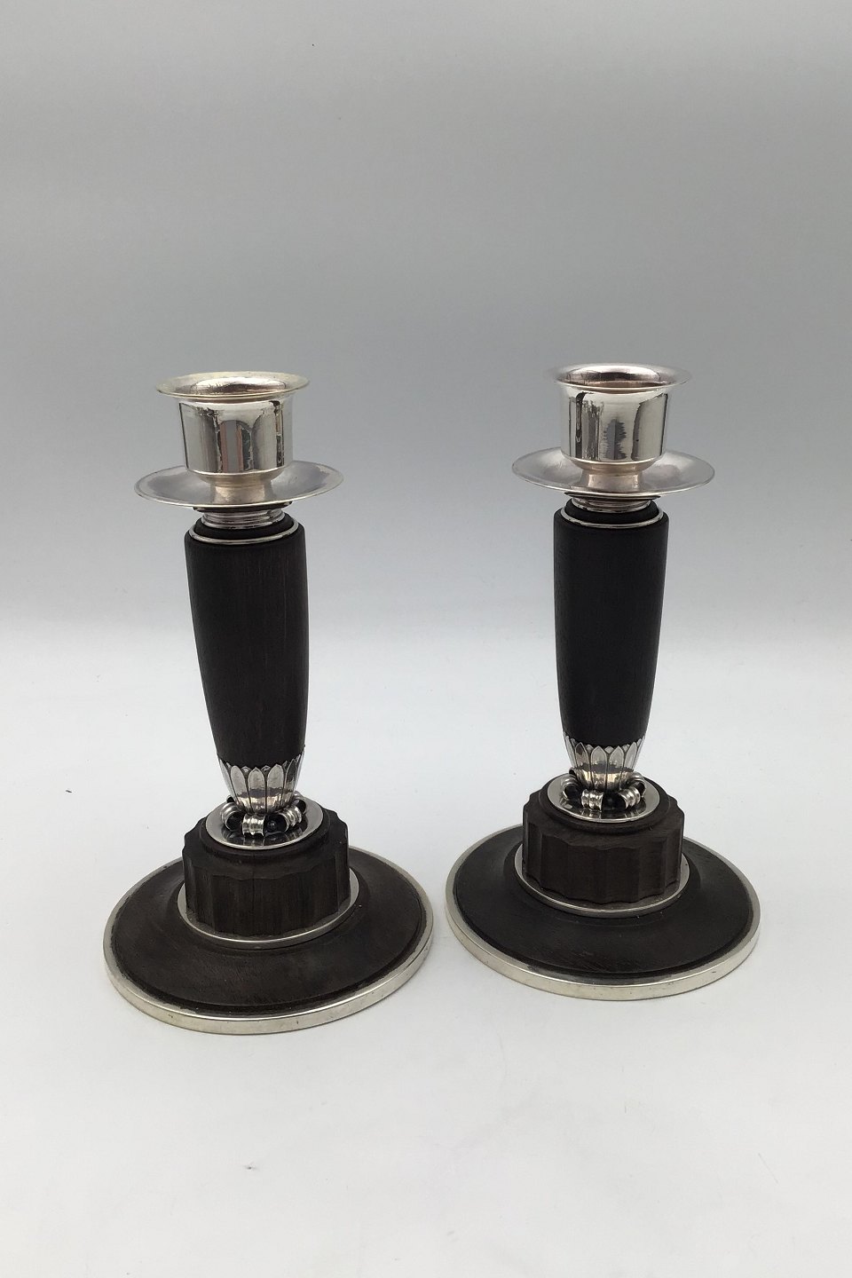 Georg Jensen Sterling Sølv Ibenholt Lysestager No. 2011 (2) (1930-1945) Måler H 16 cm (6.29 inch) Diam 9 (3.54 inch) Design Gundorph Albertus