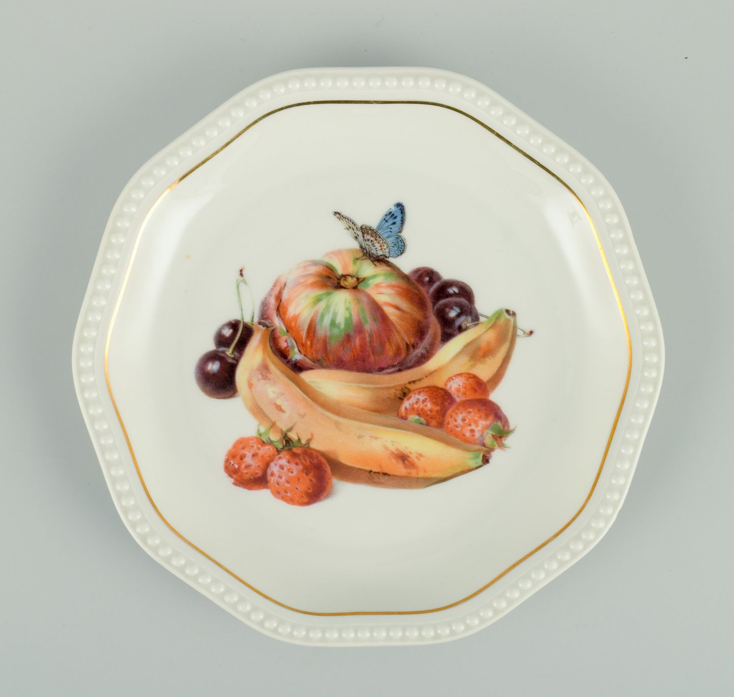 Rosenthal, Germany, six plates hand painted with fruits, butterflies and gold decoration.