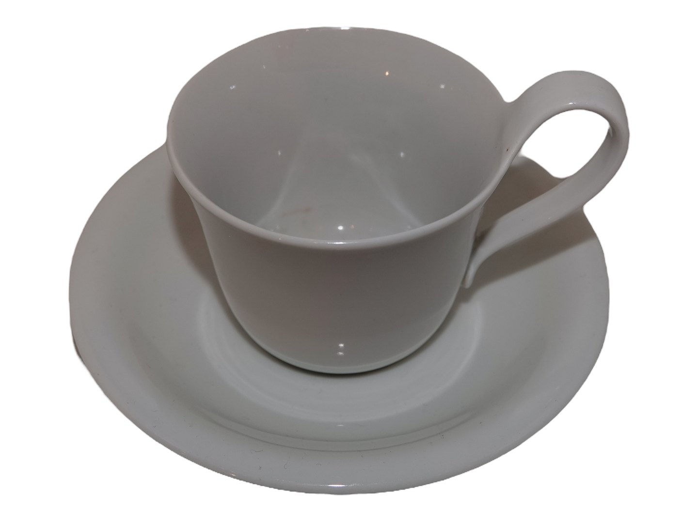 Bing & Grøndahl Hvid, højhankskop med tilhørende underkop.