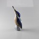 Figur i porcelæn i blålige farver af en isfugl med en fisk i næbet