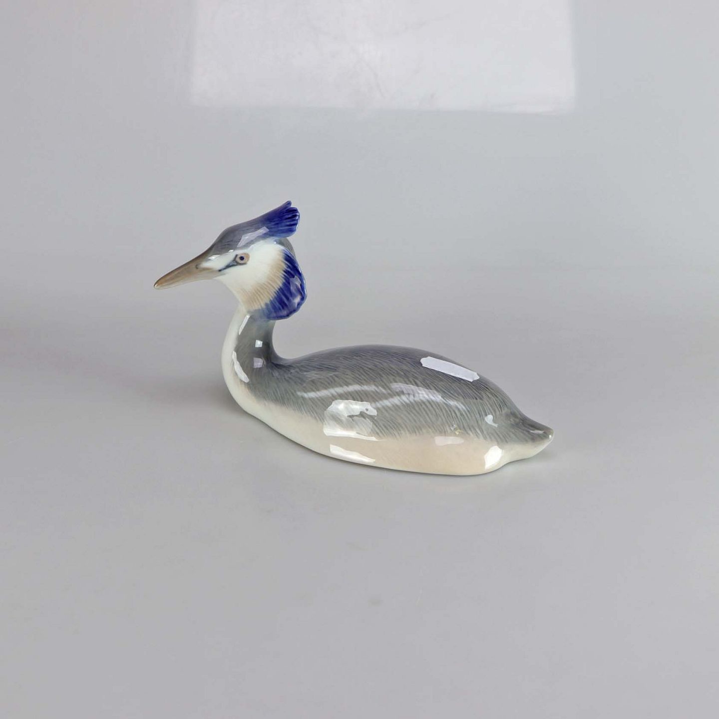 Kongelig porcelæn i form af fugl i blå og grå nuancer