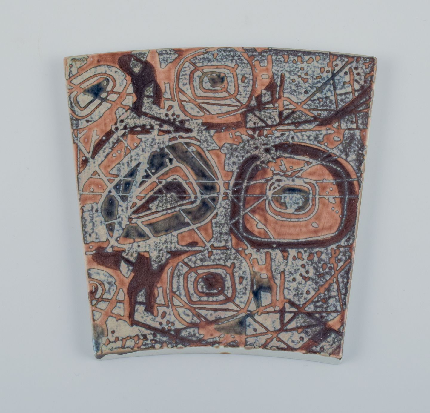 Royal Copenhagen, six Baca faience tiles with patterned glaze in brown, blue and green.