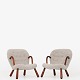 Tidlig, original Muslingestol (Clam Chair) i nyt lammeskind (Moonlight) med bejdset stel af bøg.