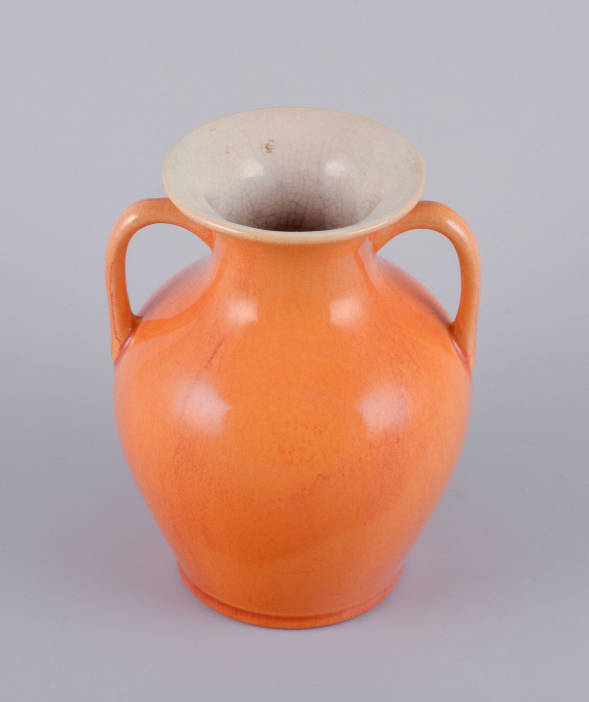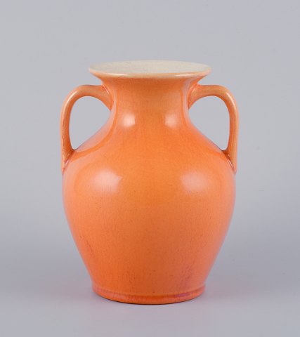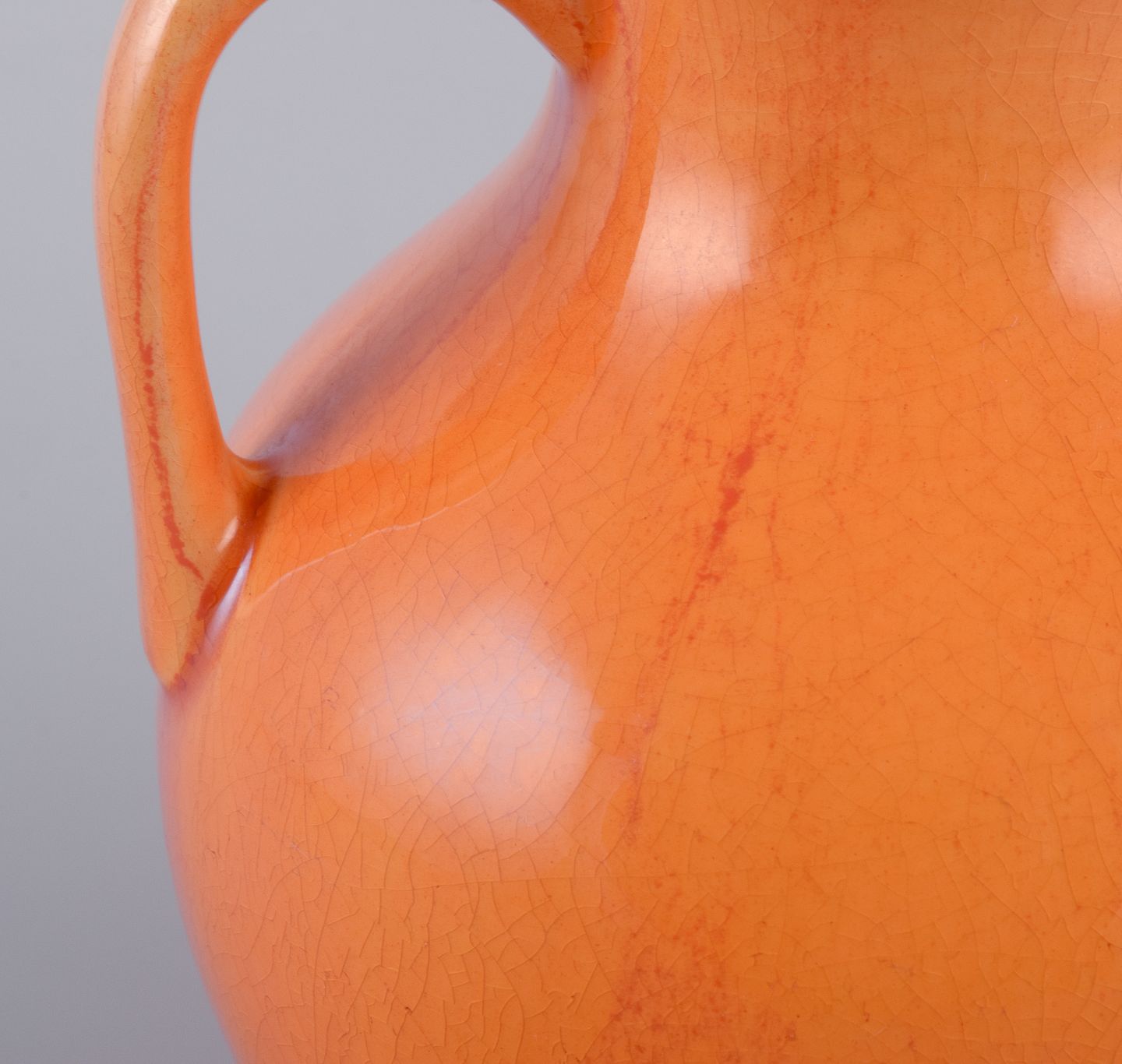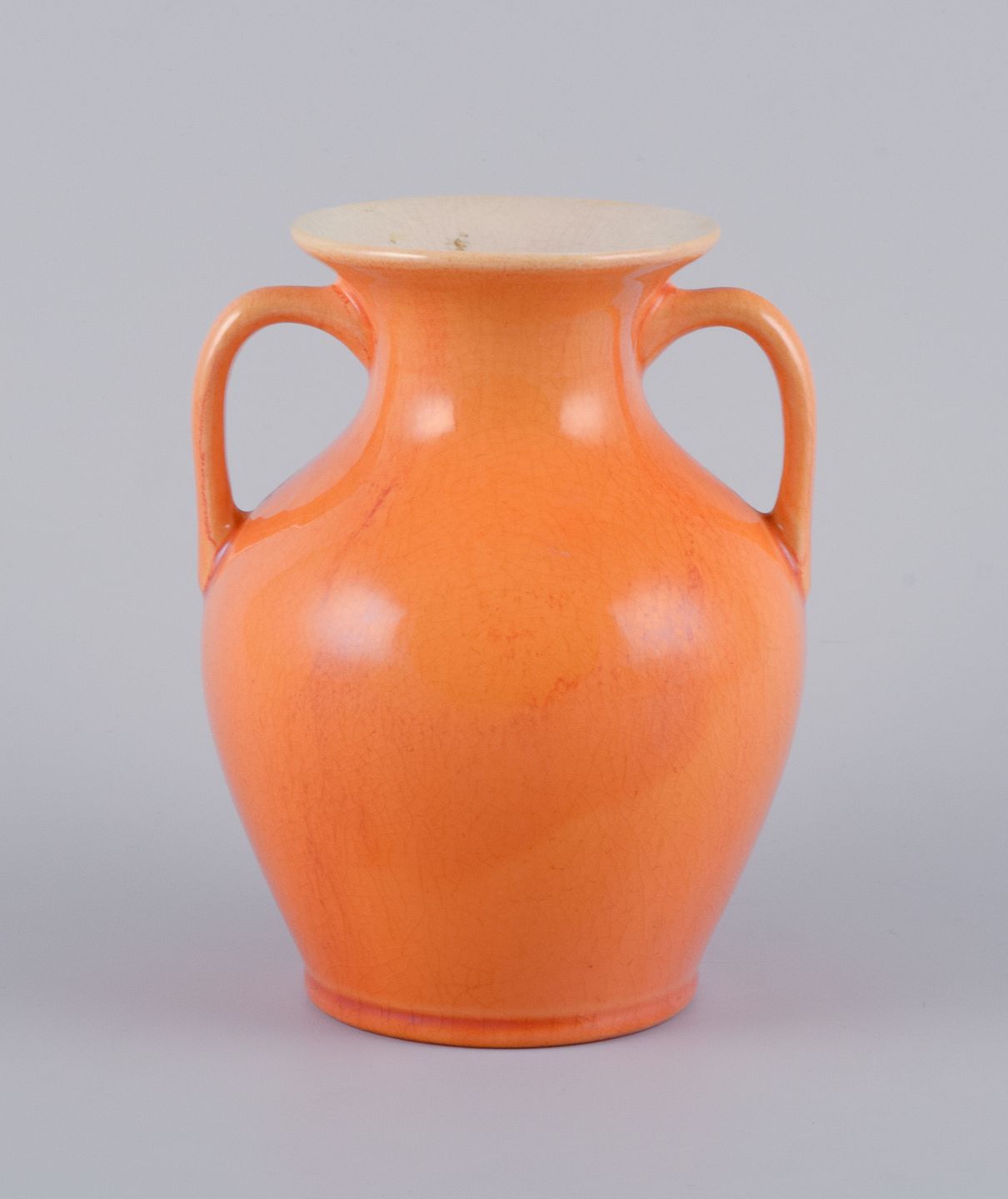 Rörstrand, Sverige, fajancevase med hanke i urangul glasur.