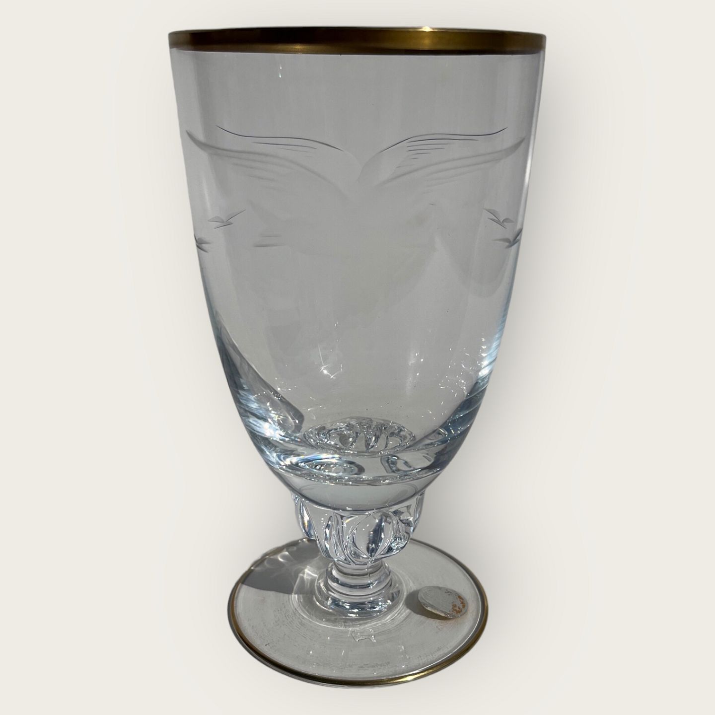 Lyngby Glas, Måge krystalglas med slibninger og guldkant, Øl / Vand, 14cm høj, 7,5cm i diameter *Pæn stand*