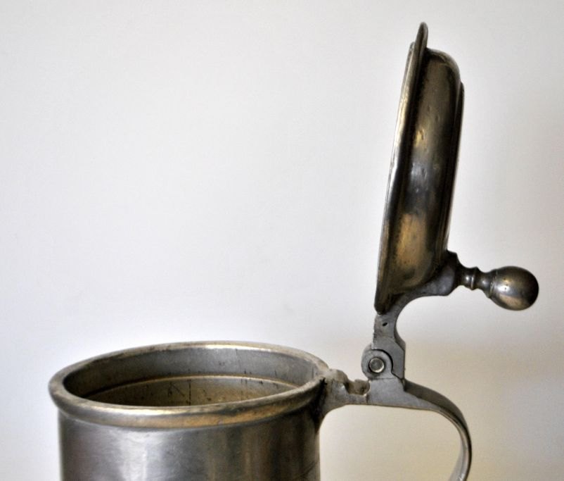 Tin krus med låg, gæk og hank, 18. årh. Tyskland.