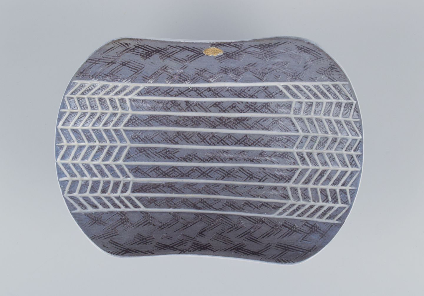 Mari Simmulson for Upsala-Ekeby, stor keramikskål i modernistisk design med glasur i grå toner.
