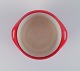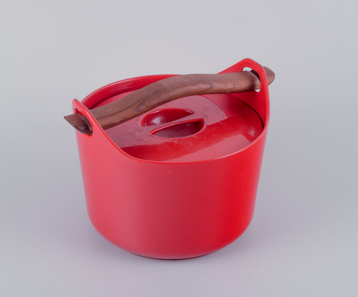Timo Sarpaneva for Rosenlew, Finland, støbejernsgryde i rød emalje med træskaft.