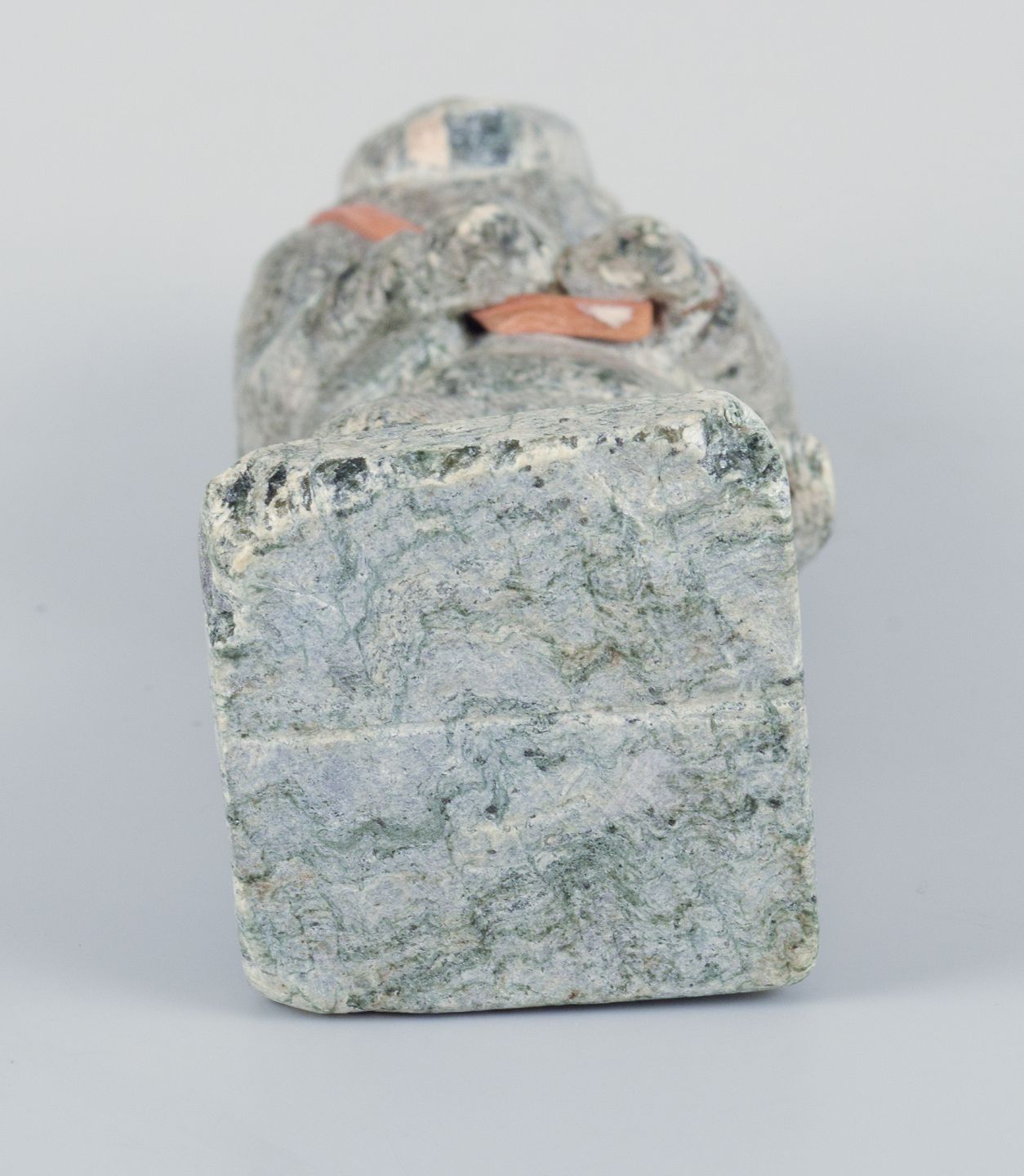 Greenlandica, an older hunter with a seal on his back, sculpture in soapstone.