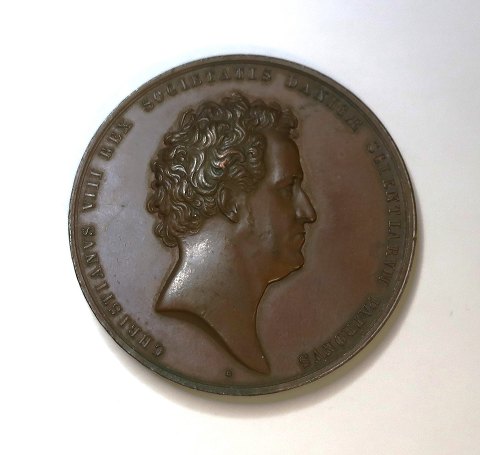 Denmark. Christian VIII. Minerva and a genius. 1842. Bronze. Diameter 43 mm