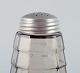 Tre drikkeglas og en sukkerbøsse Art Deco i røgfarvet presset glas.