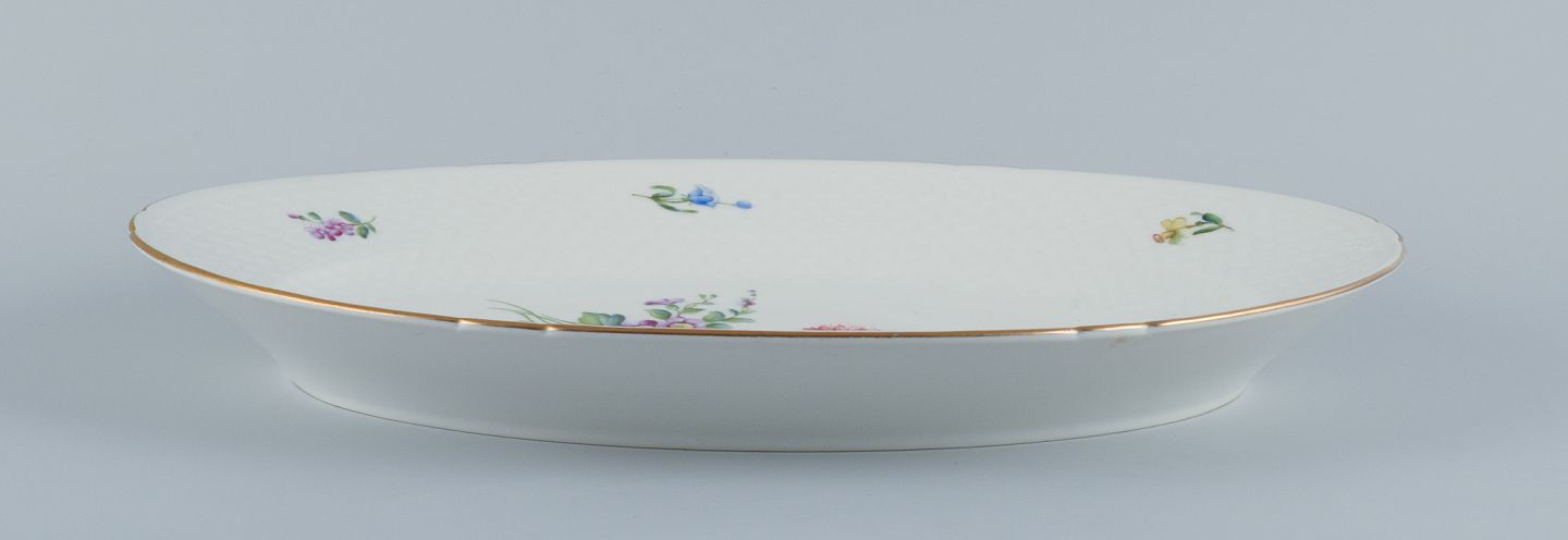 Bing & Grøndahl, Saksisk Blomst, stort ovalt serveringsfad. Håndmalet.