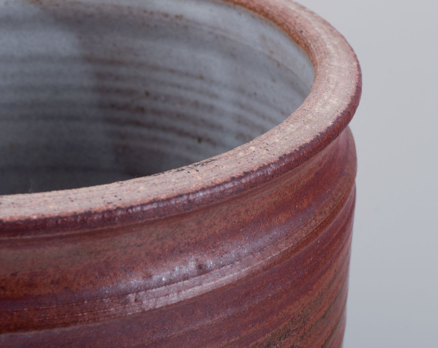 Mogens Nielsen, Nysted, kolossal håndlavet lågkrukke i keramik med glasur i brune toner.