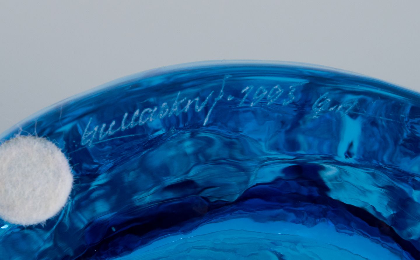 Gullaskruf, Sverige, glasvase i blåt mundblæst kunstglas.