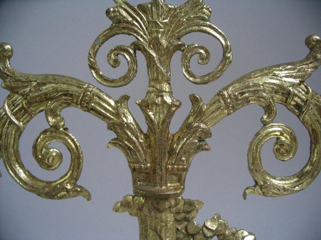 Engelsk kandelaber i lueforgyldt bronze, 19. årh. Med to figurer under et træ. Stemplet.: Cornelius & Baker. På en fod af hvidt marmor. H.: 43 cm. B.: 45 cm.