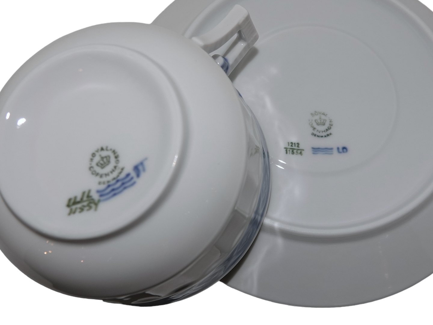 Royal Copenhagen Blå Vifte, ekstra stor morgenkop / chokoladekop med tilhørende underkop.