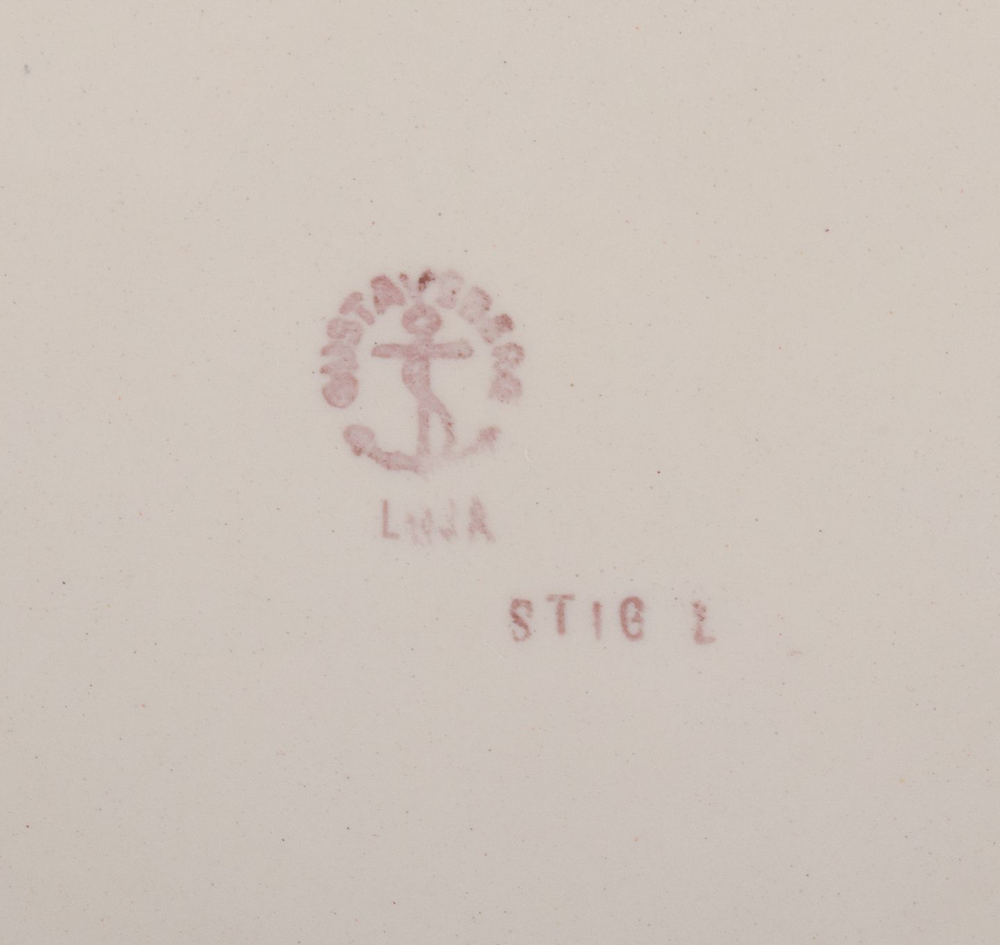 Stig Lindberg for Gustavsberg. "Löja" plate. Hand-painted with a fish motif. Satirical illustration with Swedish text.