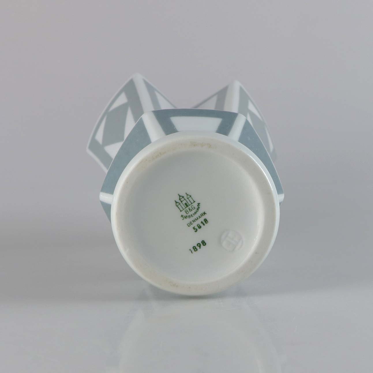 Kantet vase i porcelæn, dekoreret med grå mønstre. No 5818/1898