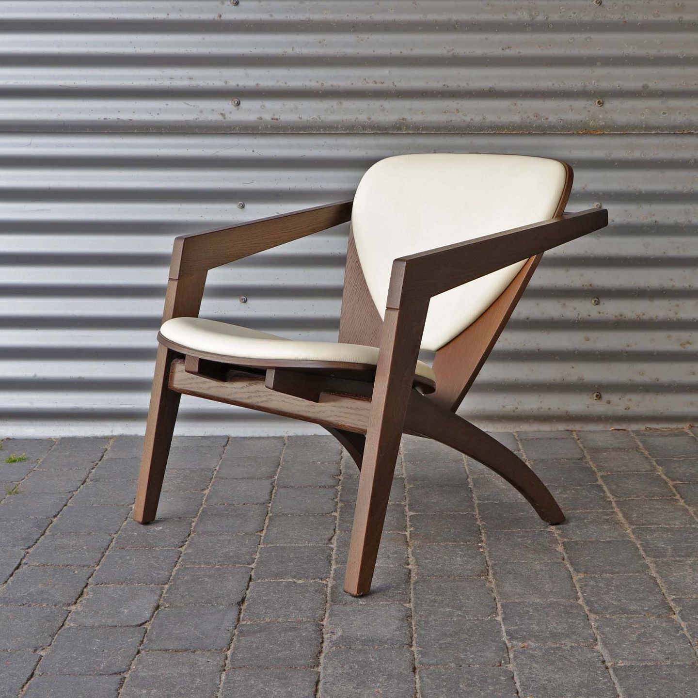 Butterfly lænestol model GE 460. Stel udført i valnød og sæde i hvidt læder.