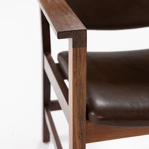 Children's armchair in rosewood and brown leather. Designed c. 1969.