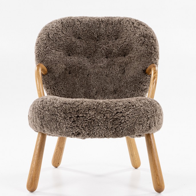 Clam chair in new lambskin (Sahara) and frame in oiled oak.