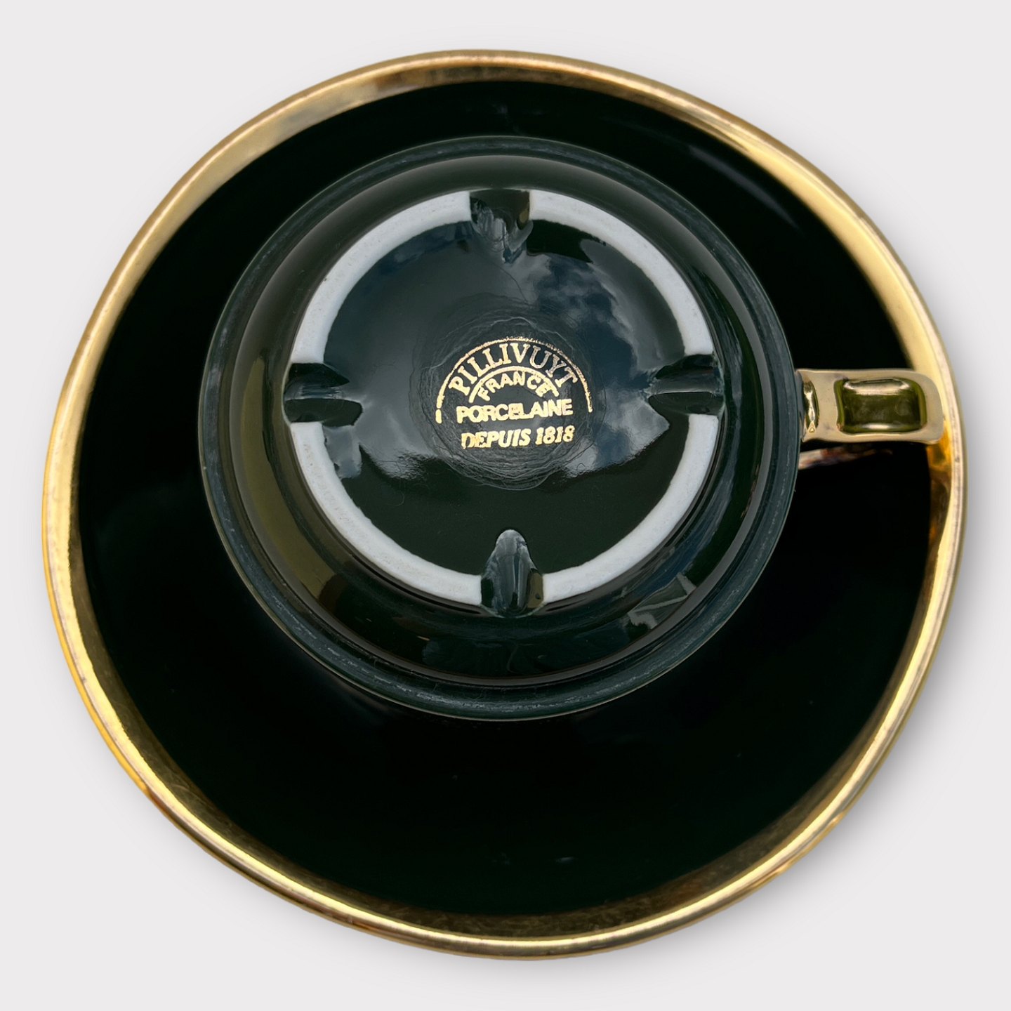 Pillivuyt, Grøn Bistro med guldkant, Tekop, 8,5cm i diameter, 7cm høj *Pæn brugt stand*