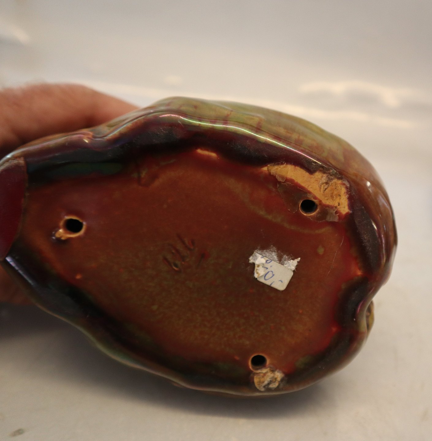 1 stk på lager MA.S Majolika Bjørneskål 15.5 x 14 cm Grønlig og brunlig lustra flydeglasur Isbjørn