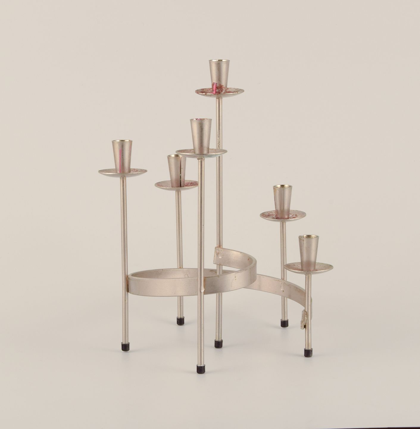 Gunnar Ander for Ystad Metall, Sverige. Et par lysestager i nysølv. Til seks lys.