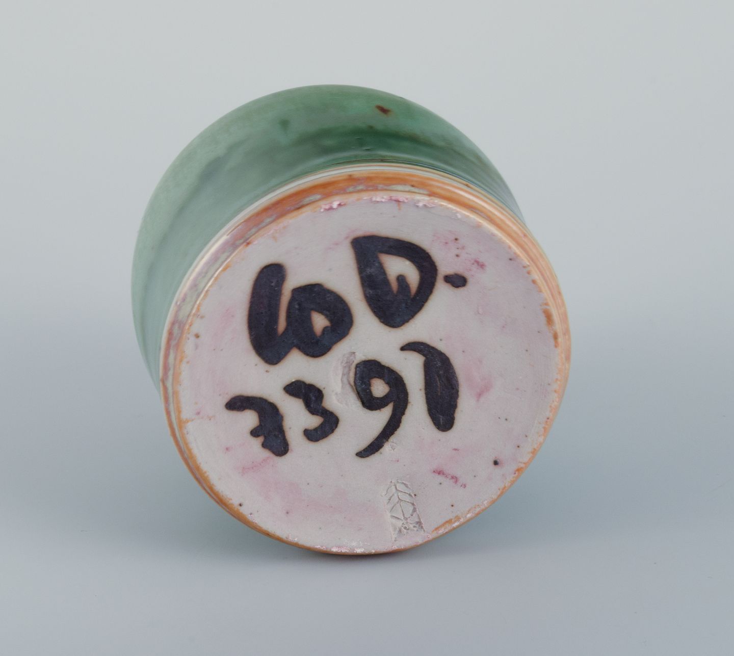 Den anden vase med rødlig glasur på sandfarvet bund.