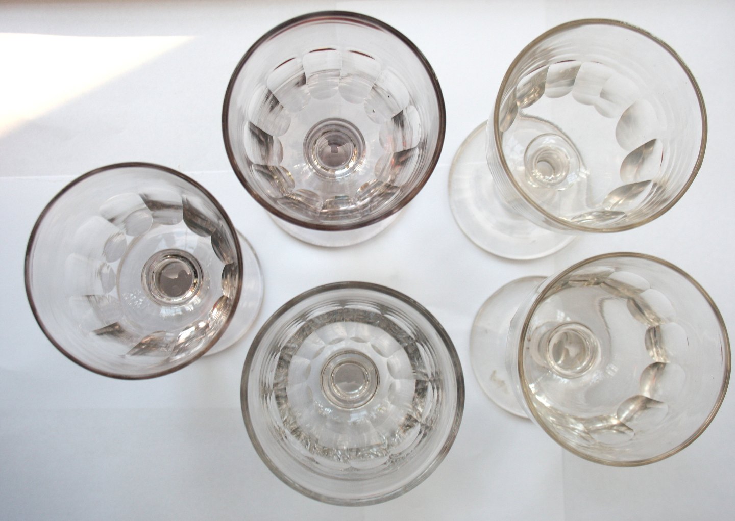 Fransk inspireret Toupie form fra flere glasværker Holmegaard og Phønix, Aalborg. 2 af dem er antagelig franske krystalglas. Facetslibning på kumme og dobbeltkuglet stilk med rille imellem. Højde 15-15,5 cm. Øverste diameter 7,5-8 cm. Pris: 350 kr. stk. Lager: 5