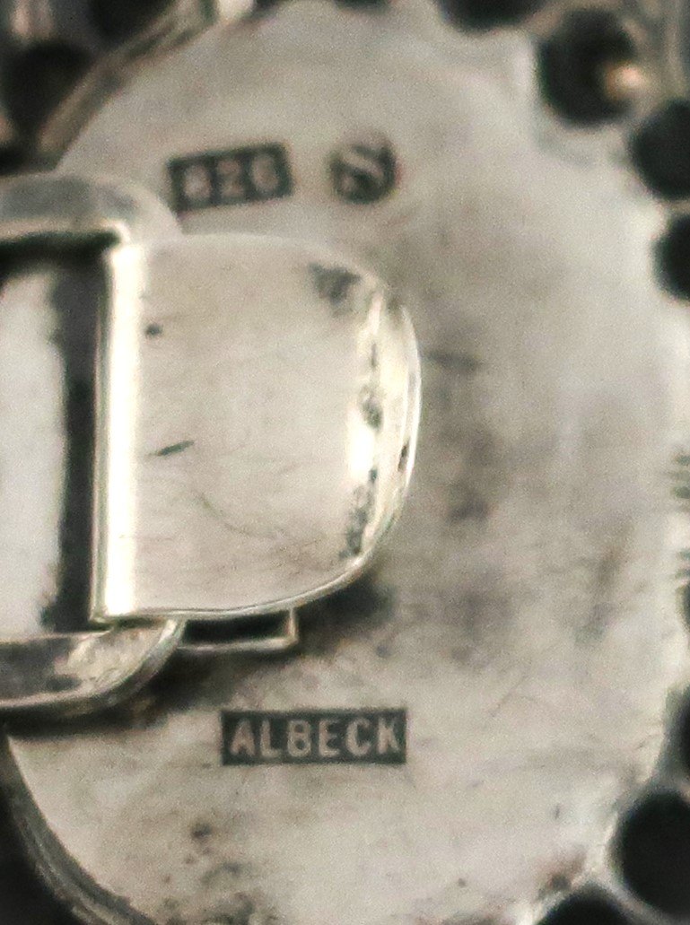Albeck, København. Sølv bæltespænde med rav (826). Længde 79 mm