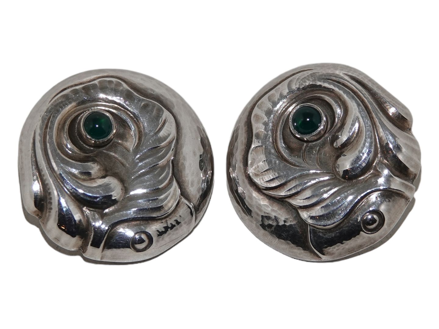 Georg Jensen sterlingsølv, øreclips / øreringe med grønne sten.