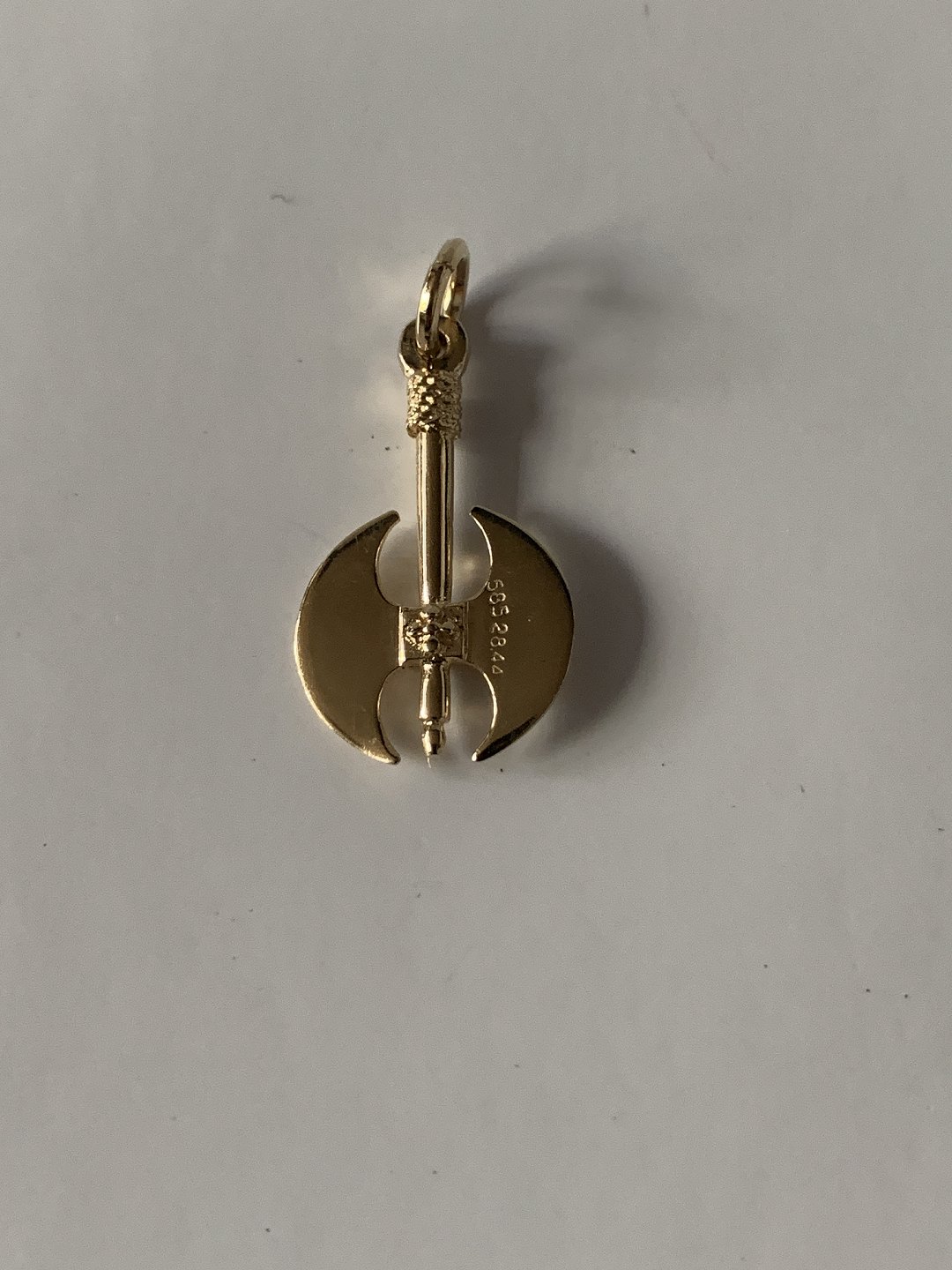 Pendant in gold, shaped like a battle axe. 14 carat gold, in a simple motif.