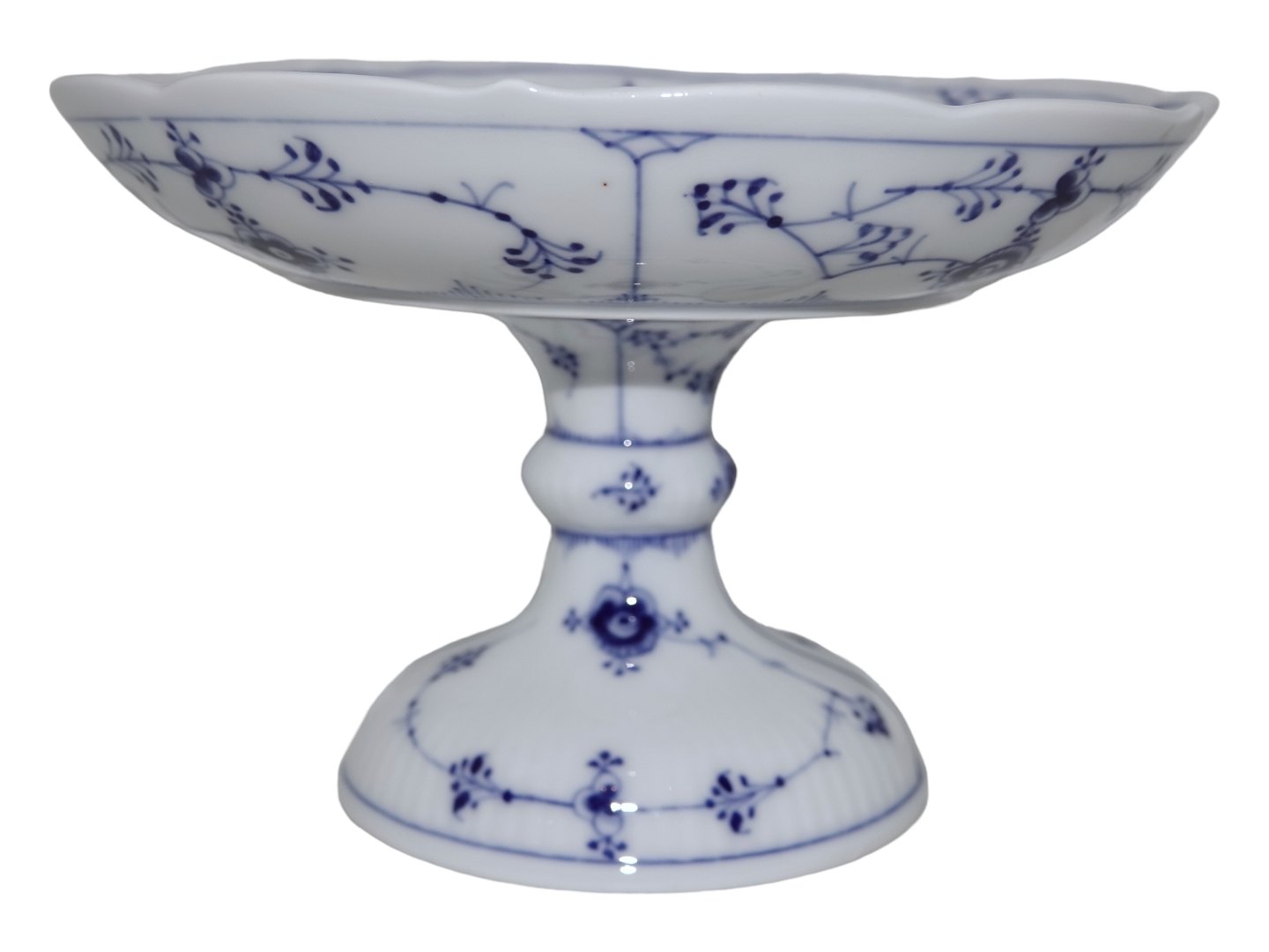 Royal Copenhagen Musselmalet Riflet, lille kageopsats på fod.