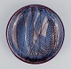 Lav skål i keramik. Abstrakt motiv. Glasur i blålige og sandfarvede toner.