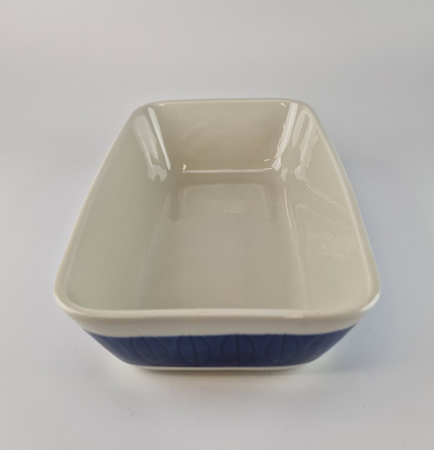 Blå Koka er af hvidt glaseret porcelæn med et bånd af mørk blå