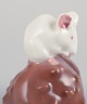 Royal Copenhagen. Porcelænsfigur af mus på sten.