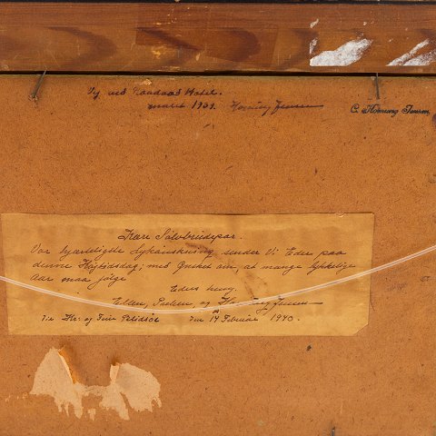 Oil on canvas. Road by Raavad Hotel from 1939, with gold painted frame. Signed. Note on the back.