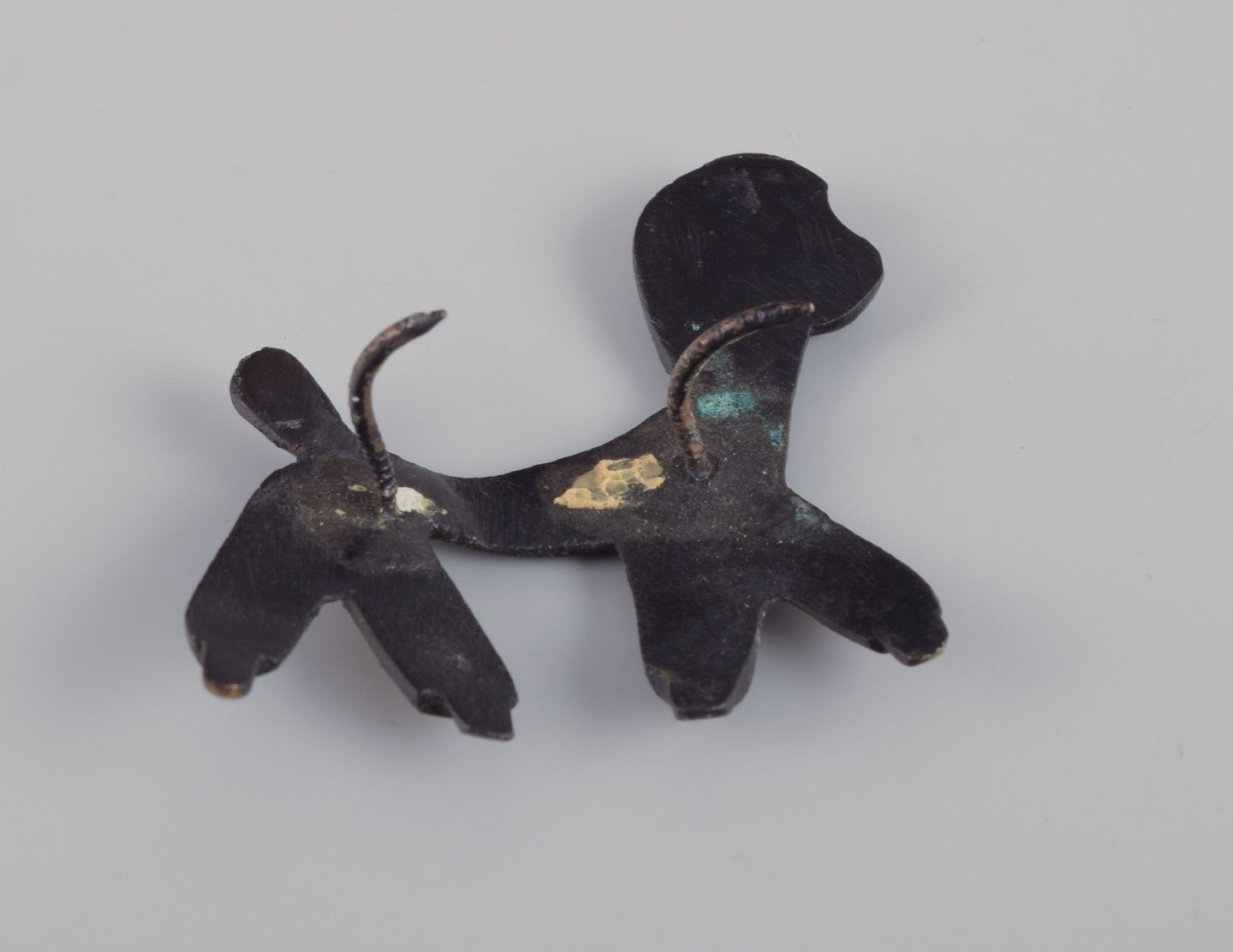 Tre miniature-figurer i bronze. Babyelefant, ko og puddel.