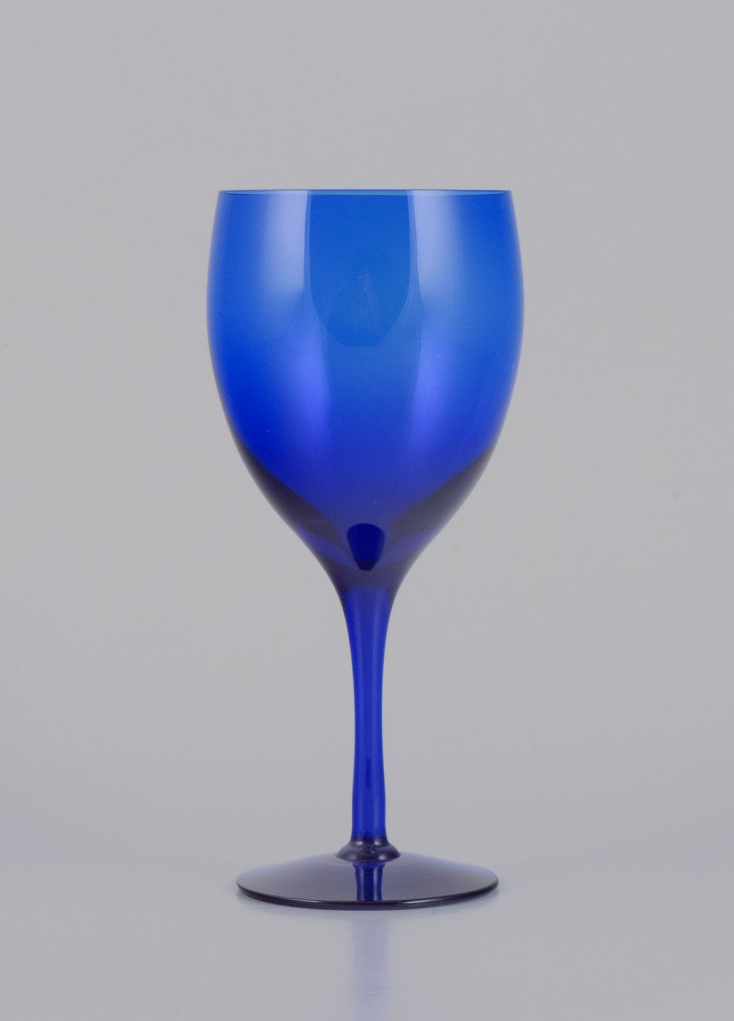 Monica Bratt for Reijmyre, Svensk glasværk. Et sæt på seks rødvinsglas i blåt kunstglas. Håndlavet.