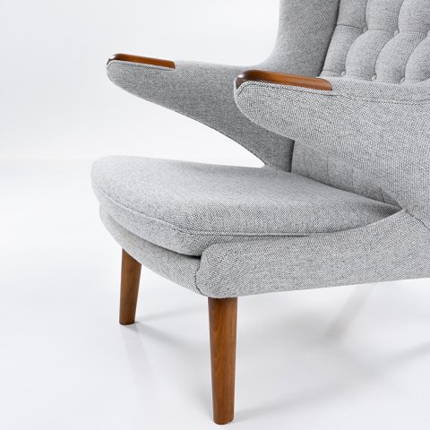 ABOUT THE FURNITURE: This is an original 'Bamsestol' by Hans J. Wegner, which was produced by the original manufacturer; AP Stolen. The chair is used, but has been reupholstered by our experienced upholstery workshop in Denmark. It appears as new and has
