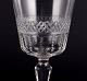 Et sæt på fem mundblæste franske rødvinsglas i krystalglas. Facetslebet. Håndlavet.