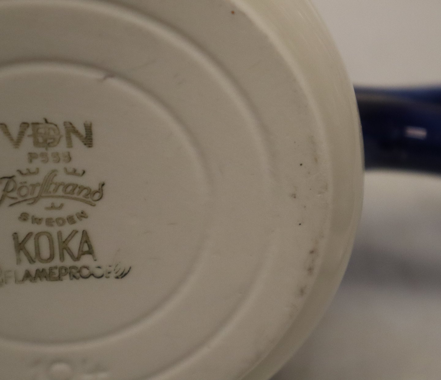 Lille Saucekande med håndtag ca 6 x 9 cm ildfast (32) Koka, blå Rørstrand Svensk Spise og kaffestel